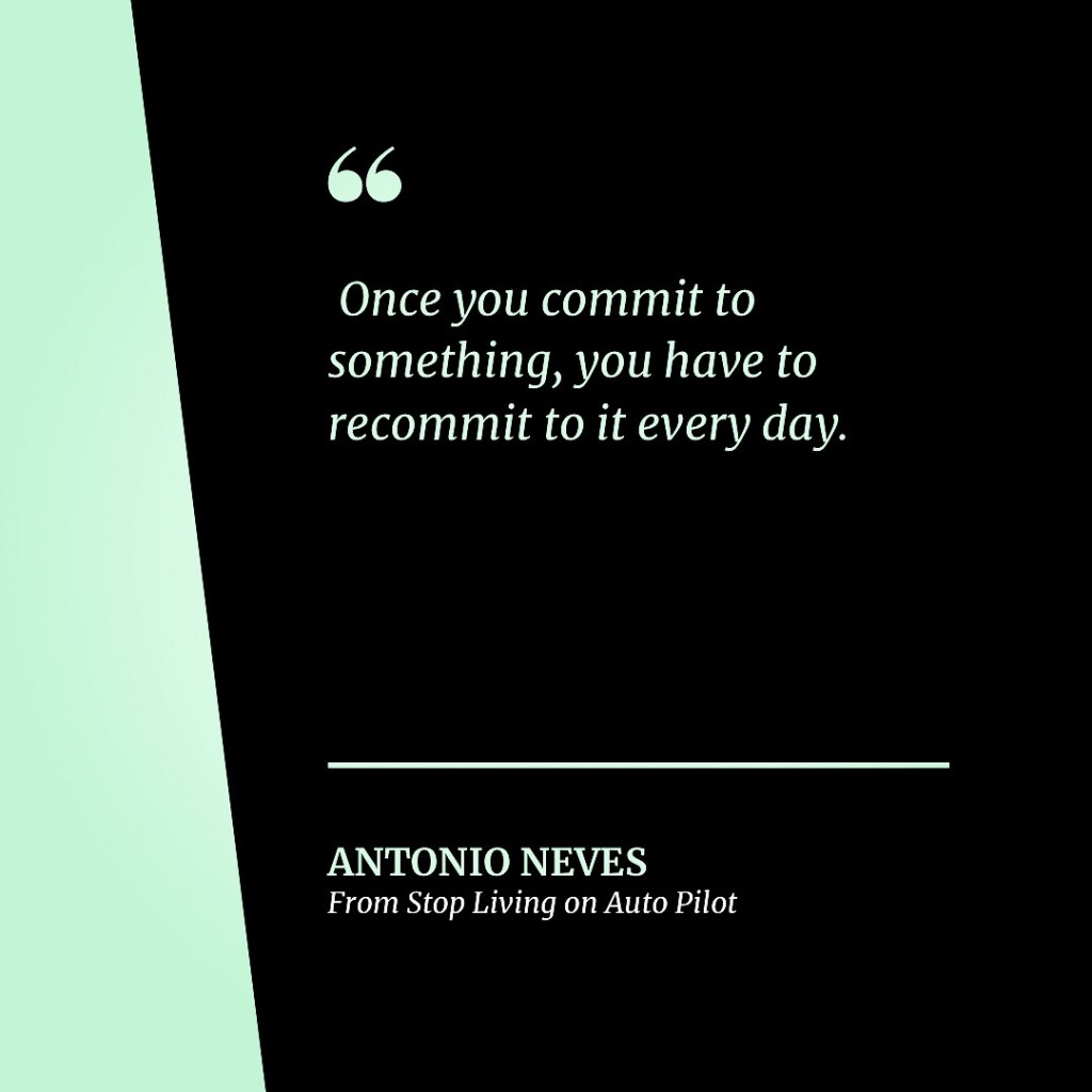 Another mention of lifestyle was in one of my prior posts where Antonio Neves points us to this concept when referring to relationships, finances, careers, spirituality,…any of the areas that are important in our life. We put our head down, we walk the talk, go like hell, and reach our goal. Then…we coast…then slide…and then bonk our head and wonder what the hell happened. Again, we stopped when we should of continued to make it part of our new daily lifestyle.