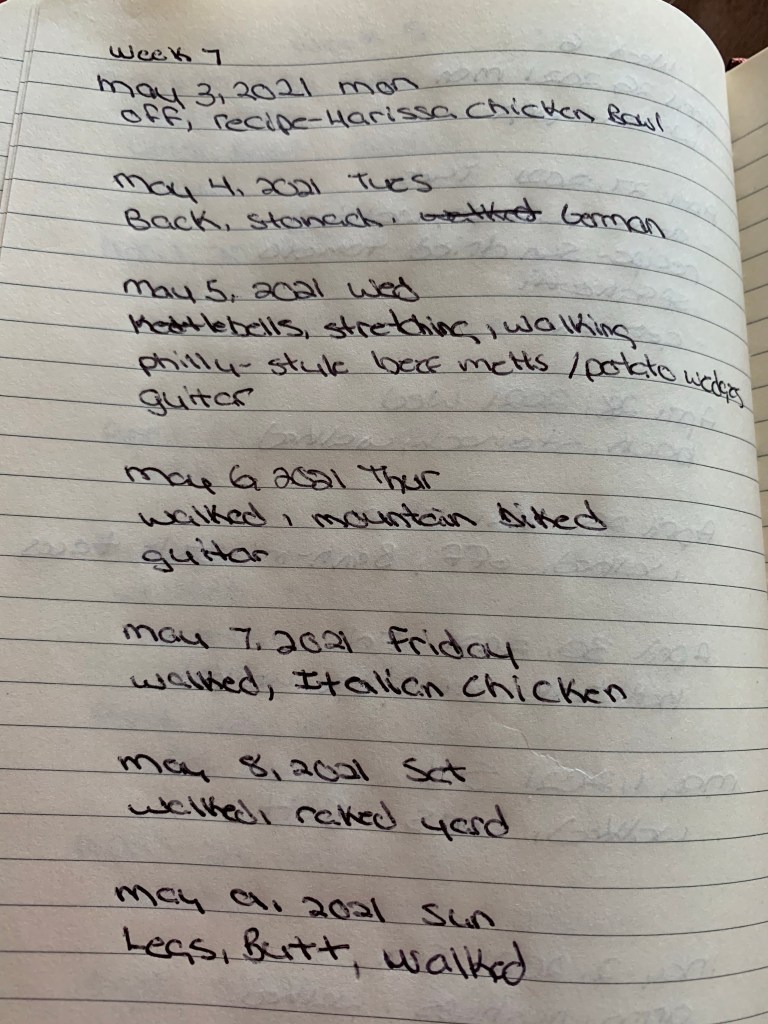 Week 7 was pretty uneventful with nothing much to report. Had to dig a bit deeper when “being lazy” played in my head. My ego is definitely starting to frick with me. I’ve been thinking about only posting my progress once a month, but honestly it’s good for me to post weekly so I can review my progress and adjust accordingly. We’re so use to the before and after pics/accomplishments we tend to forget about all the hard work in between. I think it may be time to up my game. Sorry if you all are over these Going for it posts…please feel free to skip them. These are basically for me to keep me honest.